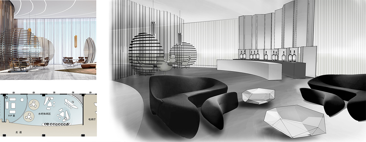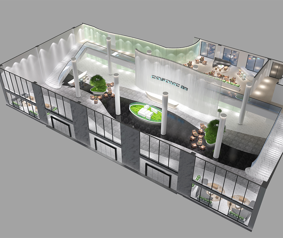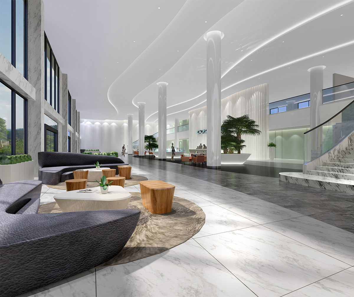 佳禾电声是一家以声学与多媒体技术及产品,短距离无线通信产品,精密电子产品模具,消费类电子产品等制造与销售为一体的企业。整个空间以流动的线型来呈现。地面瓷砖黑色、灰色、白色运用弧线搭配,天花造型跟地面呼应,整个空间给人动态的感观,进一步体现企业的文化及空间的主题。