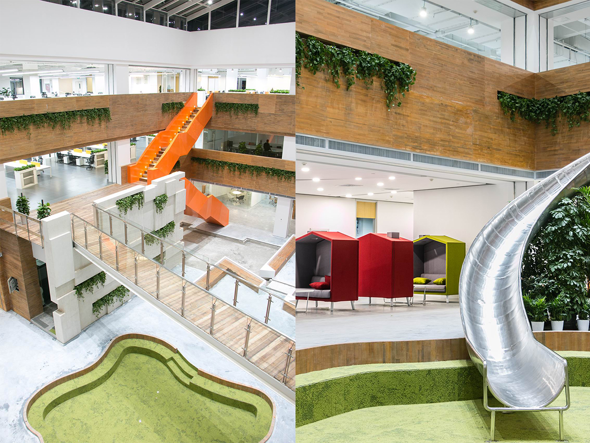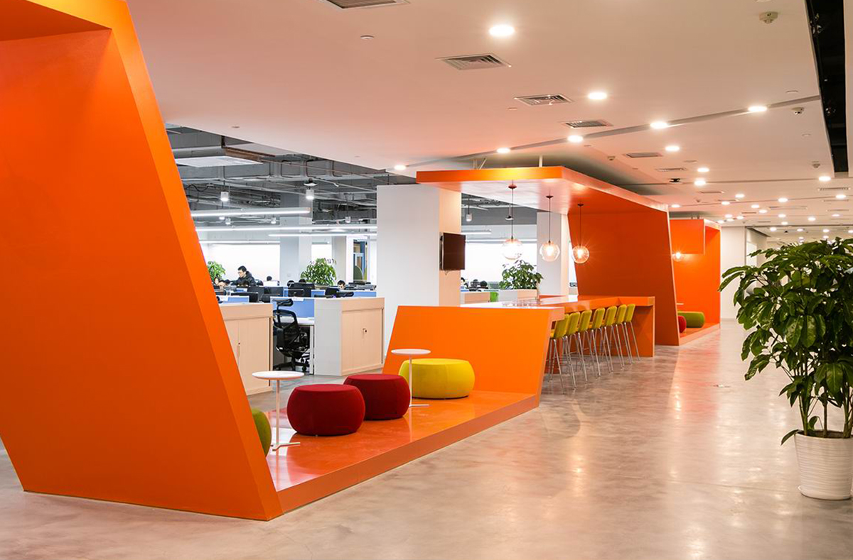 猎豹移动是一家全球领先的移动互联网公司,办公空间以活跃的氛围为主题,以鲜明的色块划分空间,体现开放性和多元化。如设计风格的多元融合,空间结构的开放性以及高度的人性化设计理念,富有奇思创意的美学构想不断地渗透到设计之中。